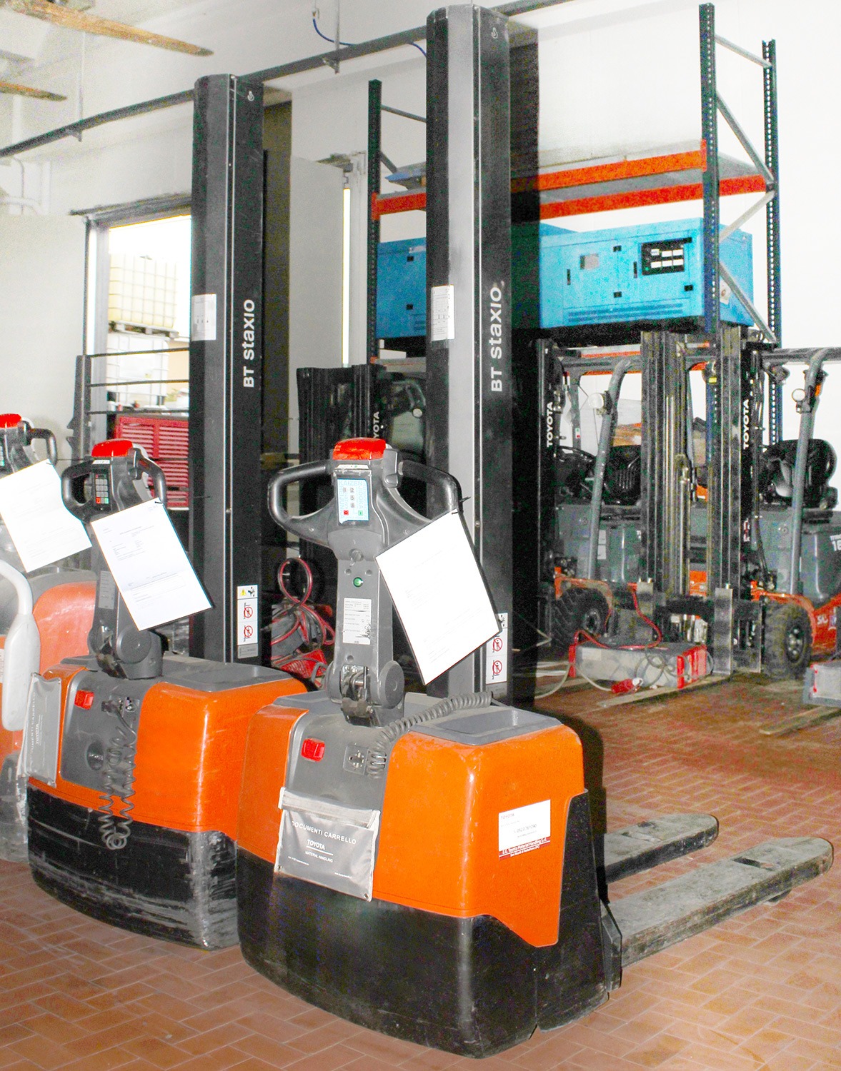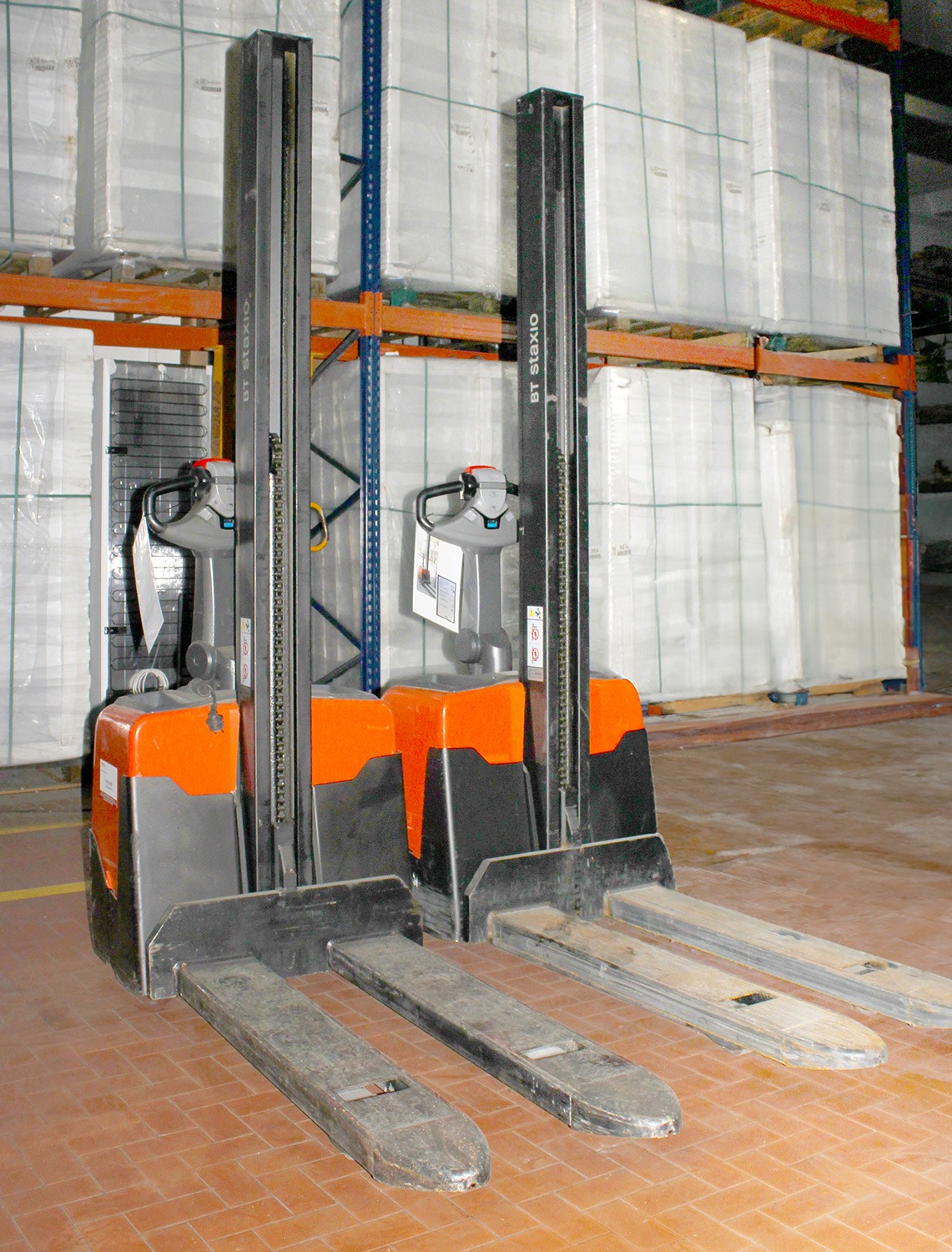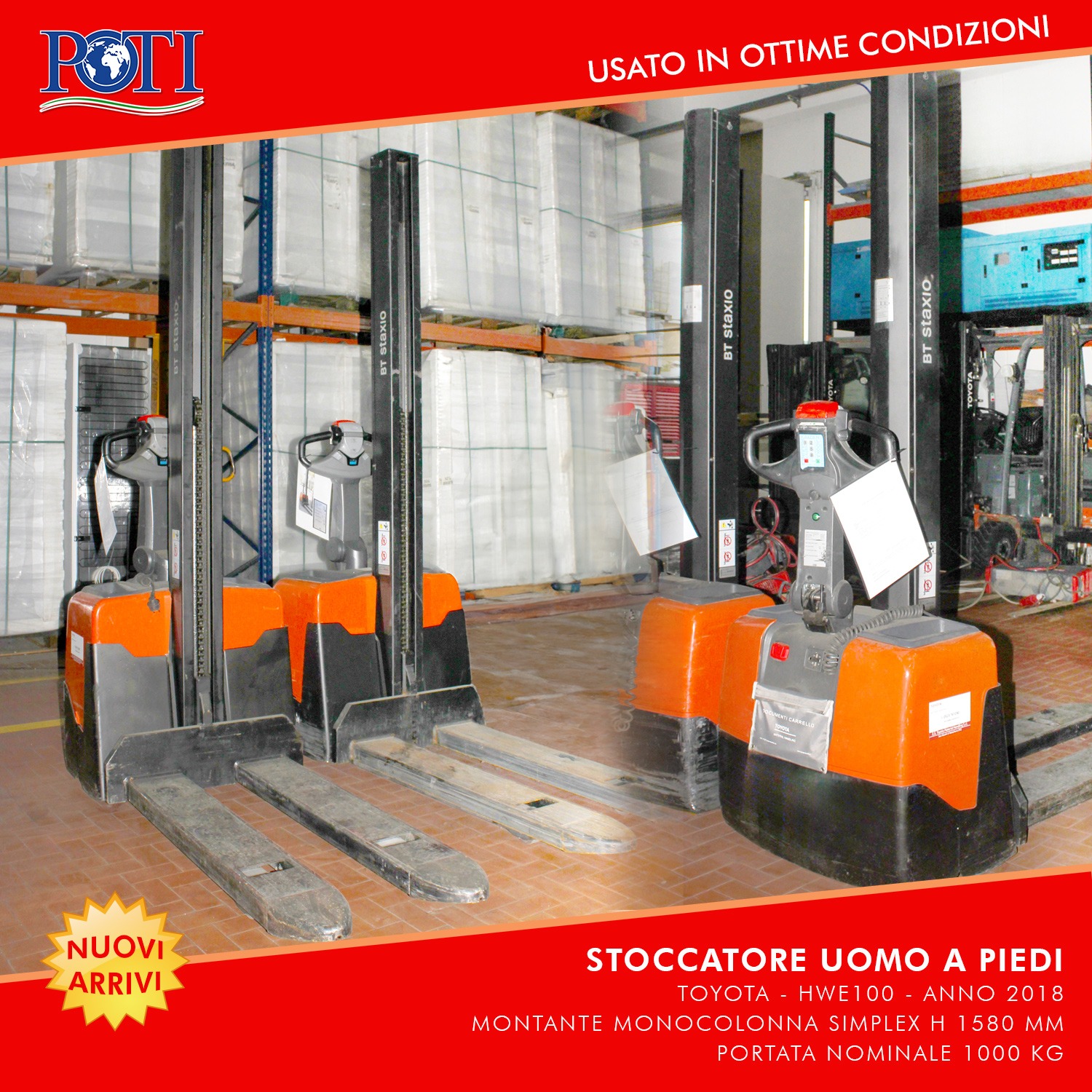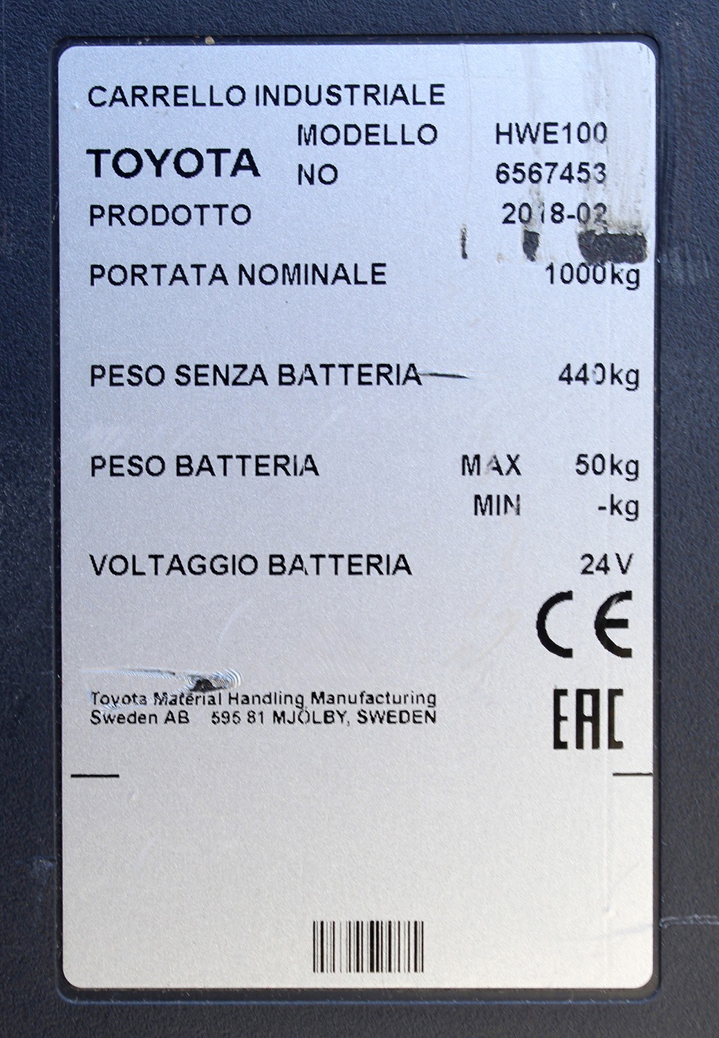 Stoccatore uomo a piedi di marca Toyota modello HWE100 con propulsione Elettrica.
